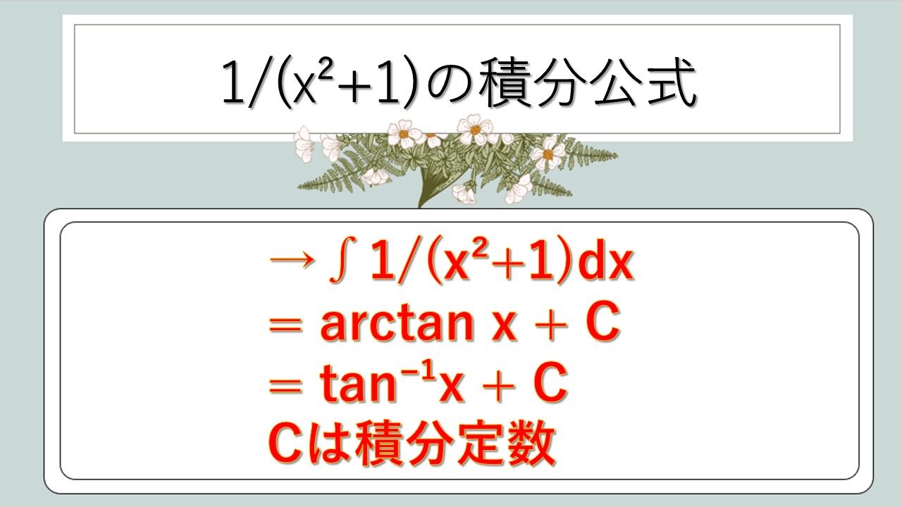 それではまず、1/(x²+1)の積分公式について解説していきます。