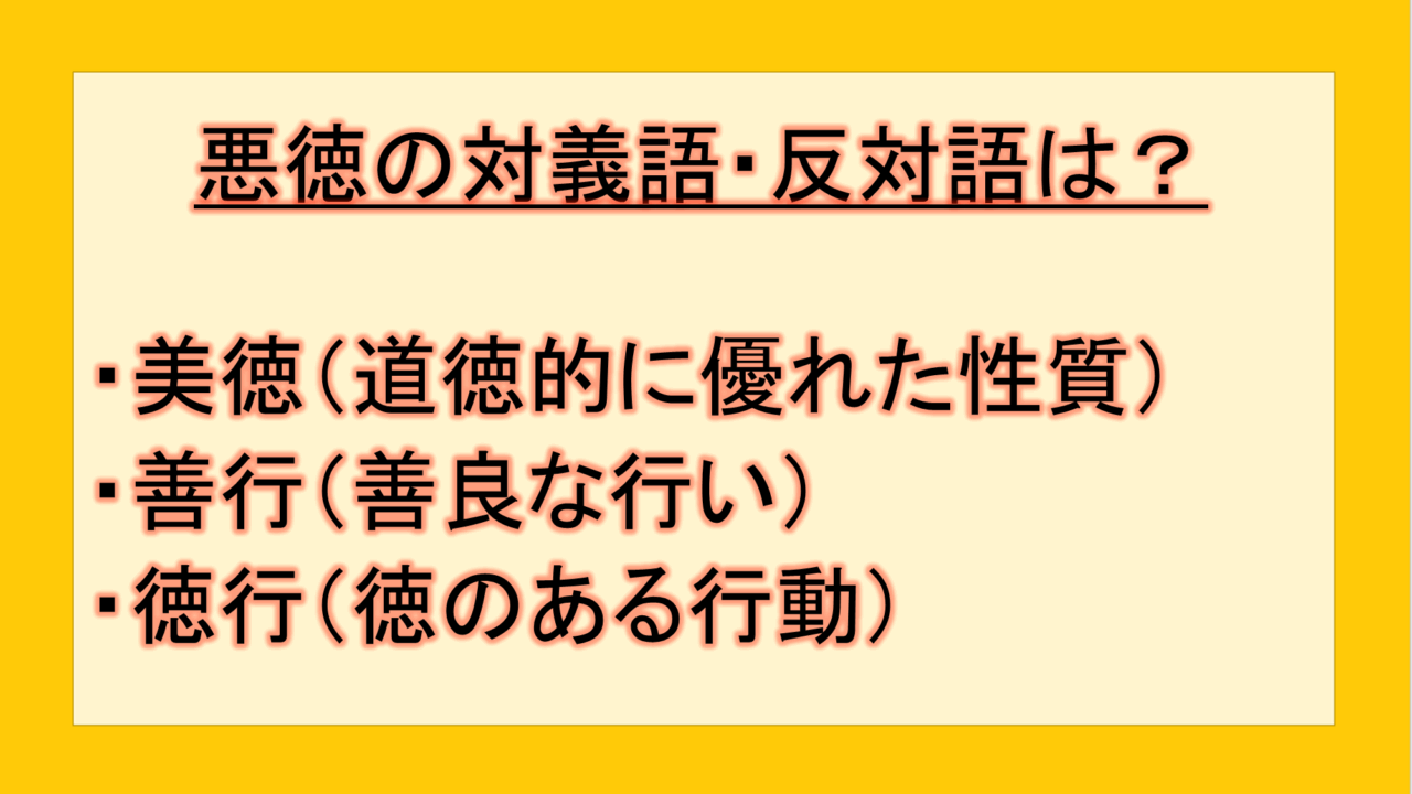 この記事では、「悪徳」の反対語・対義語について例文も交えて詳しく解説していきます。