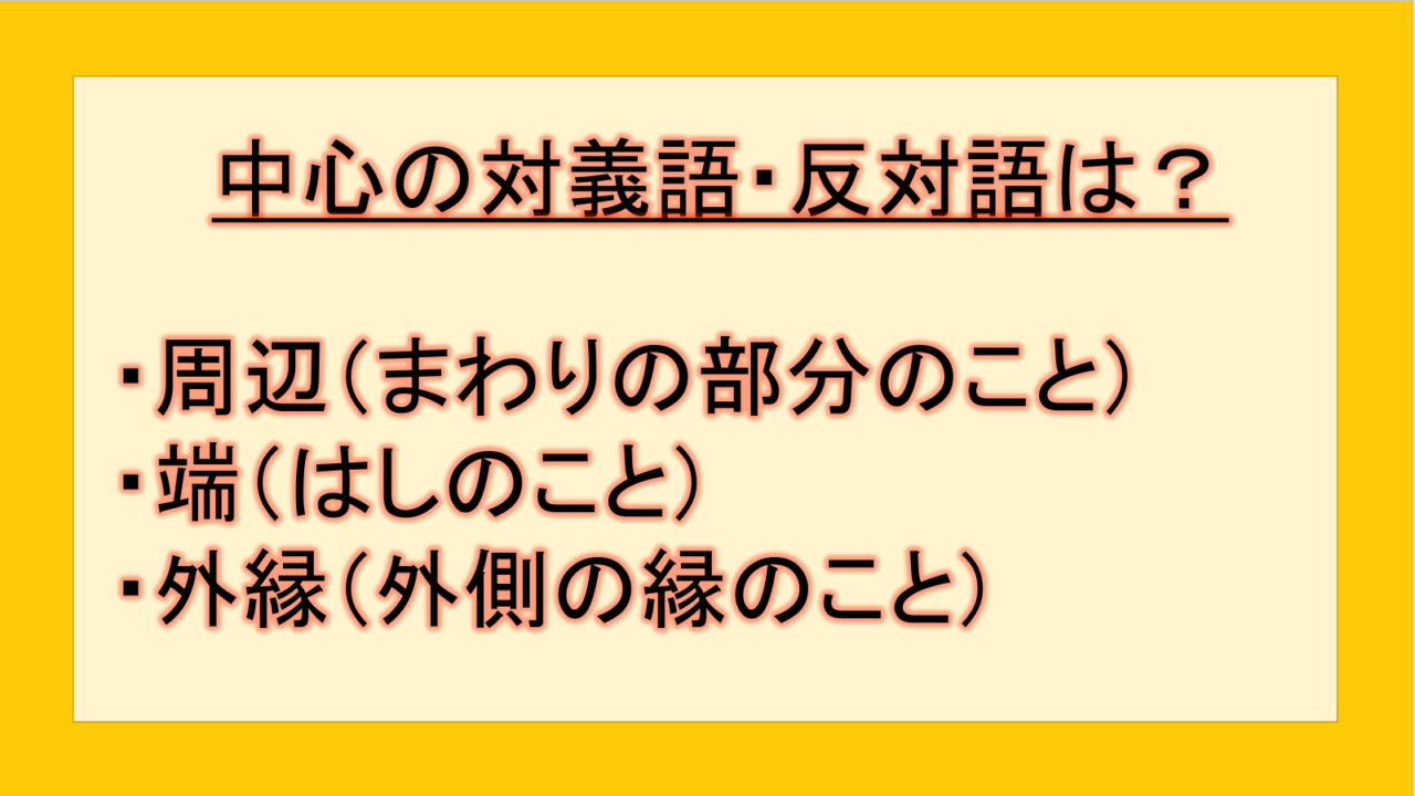 まとめ 中心の反対語や対義語の例文を紹介!