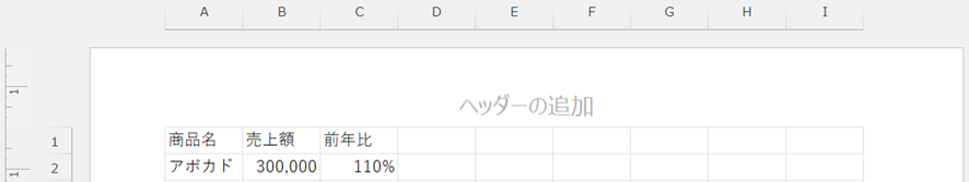 ページレイアウトビューに切り替わると、シートの上部にヘッダー領域、下部にフッター領域が表示されます。