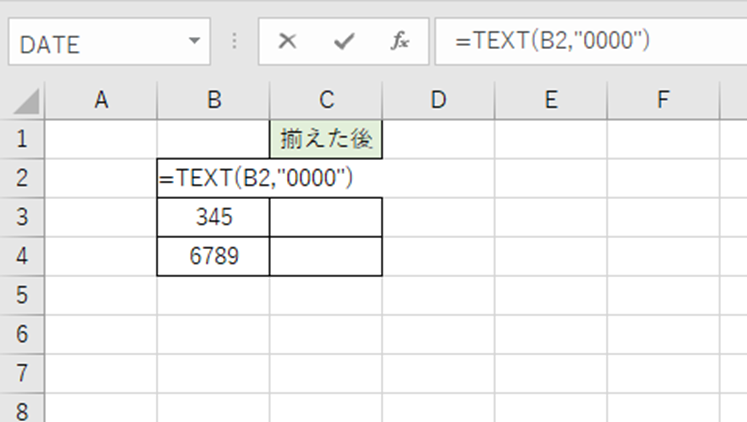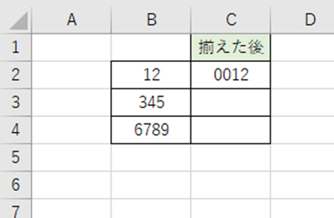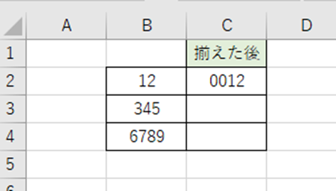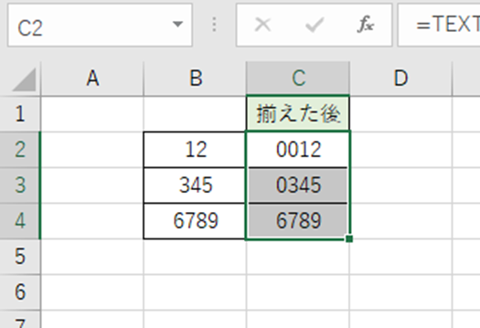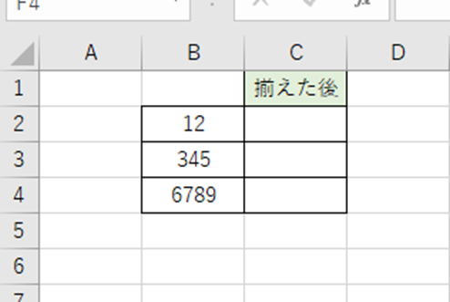 エクセルで桁数を指定し、揃える方法1【TEXT関数】