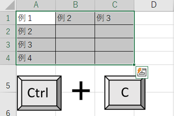 表の範囲全体を選択したら、Ctrl+Cでコピーします。