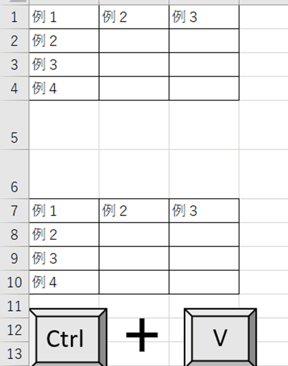 表の範囲を選択してコピーし、適切な位置に繰り返し貼り付けることで、1シート内に同じ表を複数配置できます。