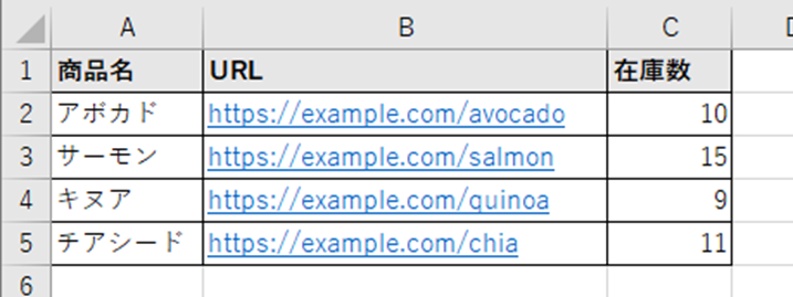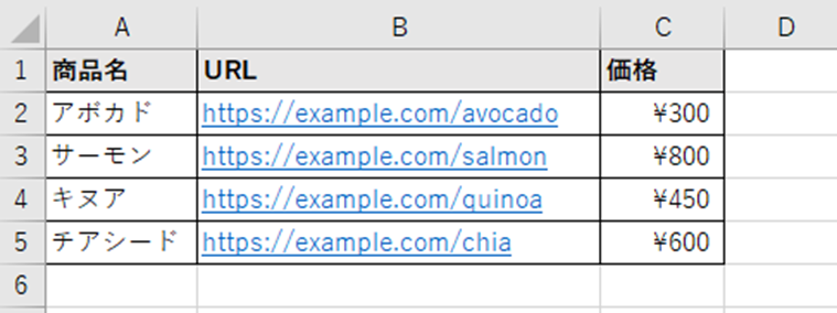 例えば、以下のような商品リストにハイパーリンクが設定されているとします。