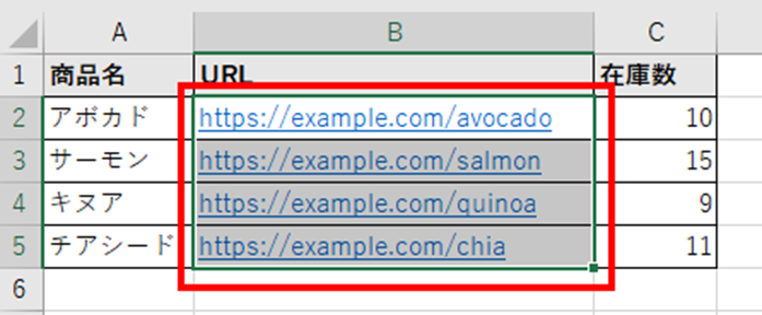 例えば、先ほどのデータで複数のセルからハイパーリンクを削除したい場合を考えてみましょう。