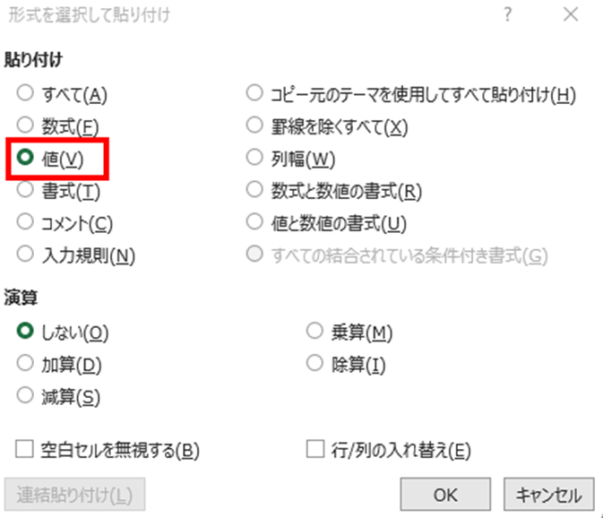 2. 同じ場所で右クリックして「形式を選択して貼り付け」を選択
