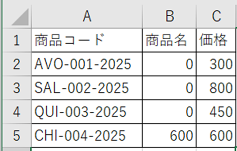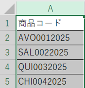例えば、以下のような商品コードデータでハイフンを削除したい場合を考えてみましょう。