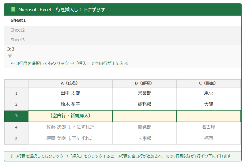 右クリックを使った行挿入の手順はとてもシンプルです。