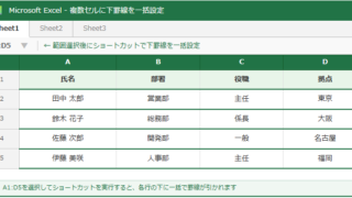 Ctrl+Shift+↓でデータ末尾まで選択してからCtrl+Dを押すと、一番下まで一気にコピーできるため、この2つのショートカットの組み合わせは非常に強力です。