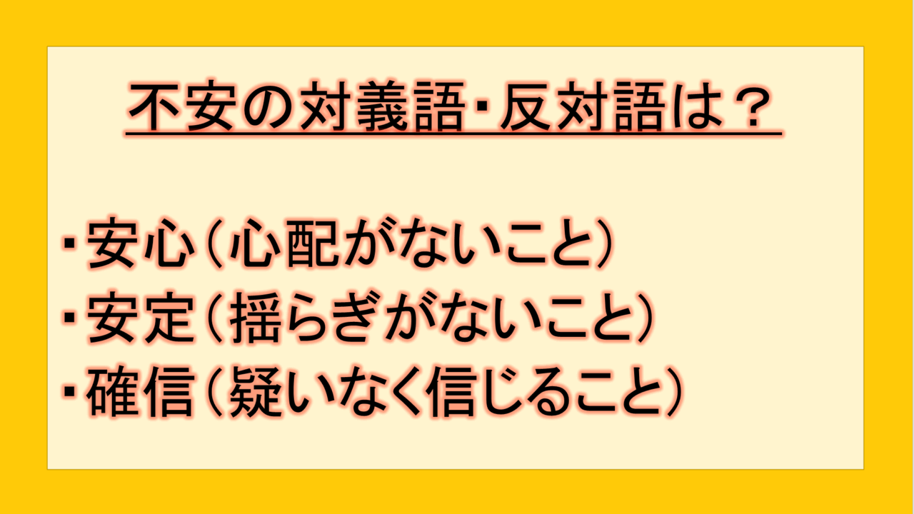 この記事では、「不安」の反対語・対義語について例文も交えて詳しく解説していきます。