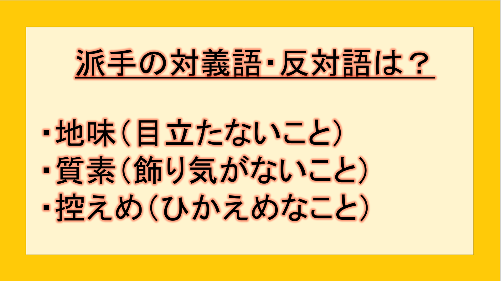 この記事では、「派手」の反対語・対義語について例文も交えて詳しく解説していきます。