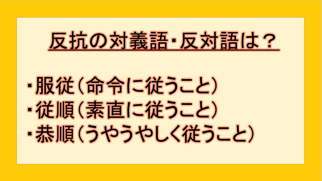この記事では、「反抗」の反対語・対義語について例文も交えて詳しく解説していきます。