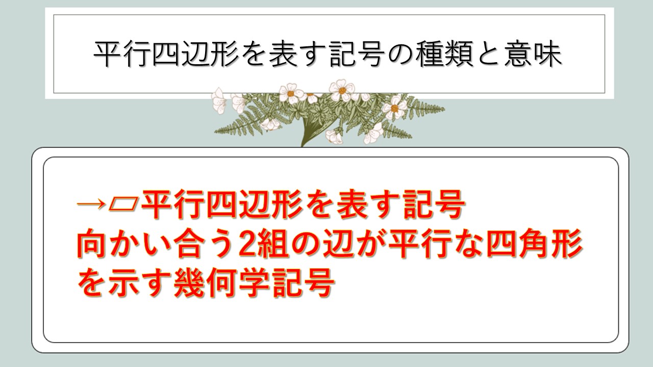 それではまず、平行四辺形の記号と平行記号の基本知識について解説していきます。