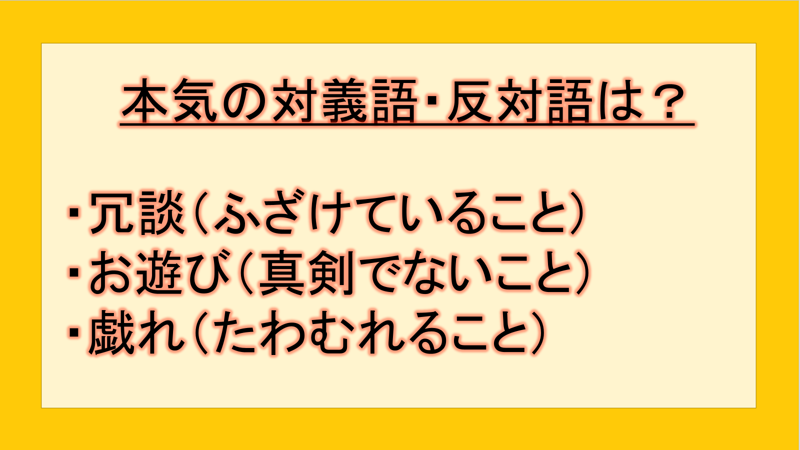 この記事では、「本気」の反対語・対義語について例文も交えて詳しく解説していきます。
