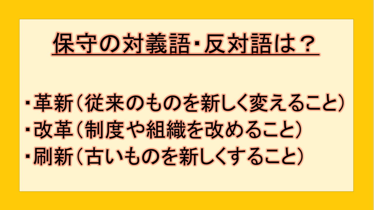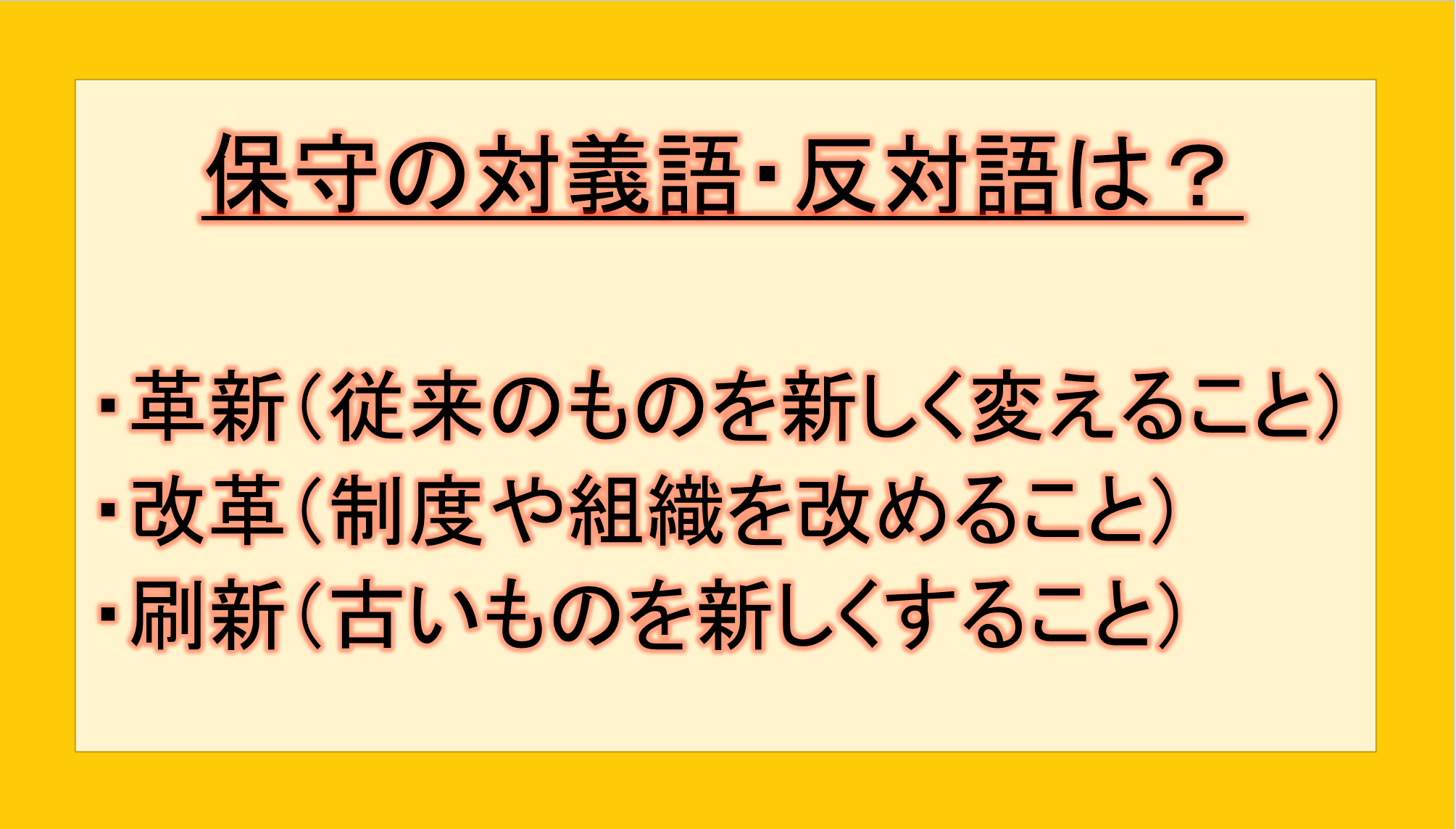 この記事では、「保守」の反対語・対義語について例文も交えて詳しく解説していきます。