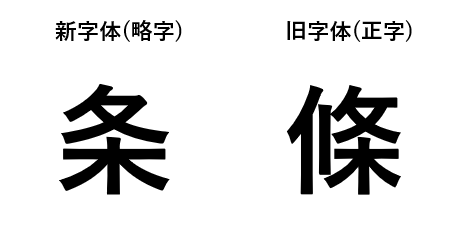 | 項目 | 新字体「条」 | 旧字体「條」 |