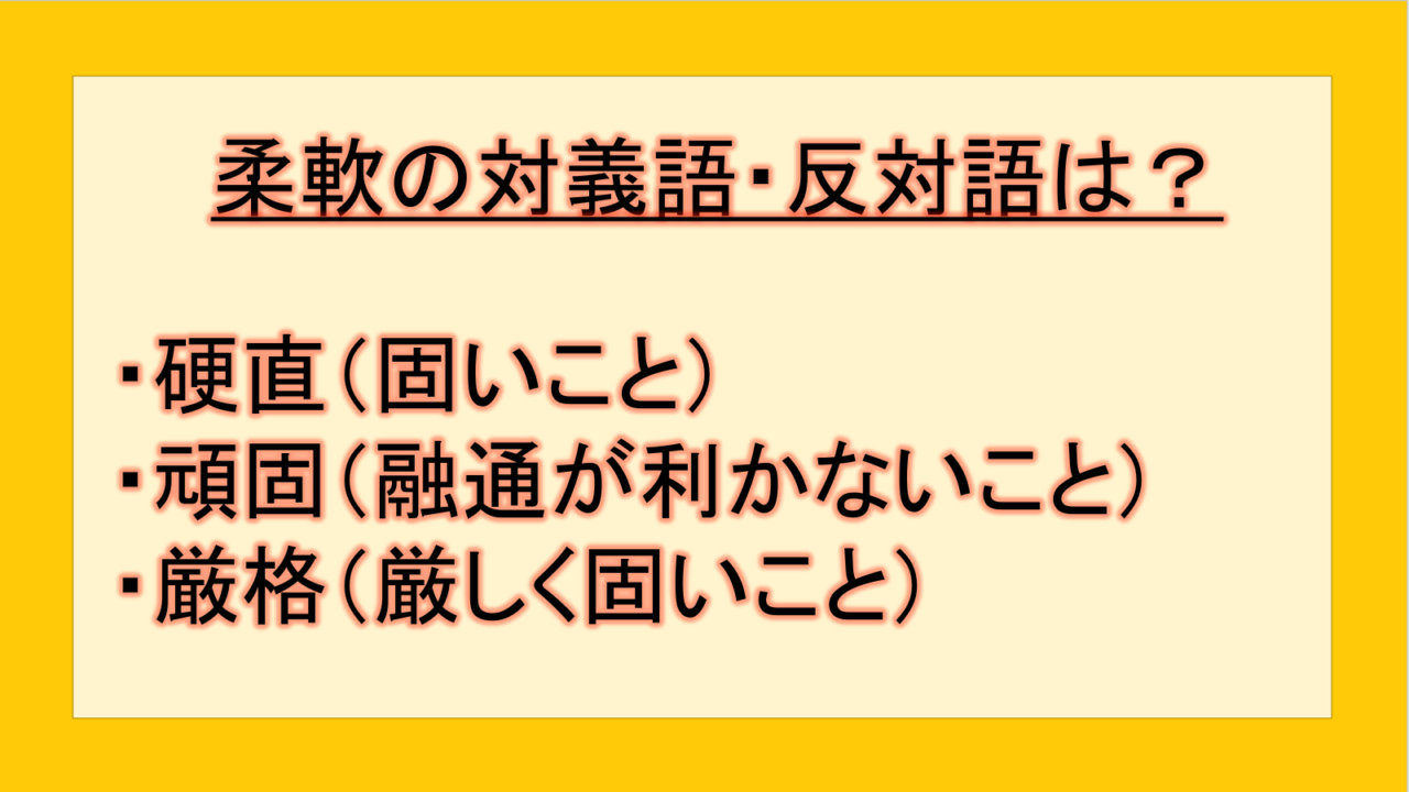 この記事では、「柔軟」の反対語・対義語について例文も交えて詳しく解説していきます。