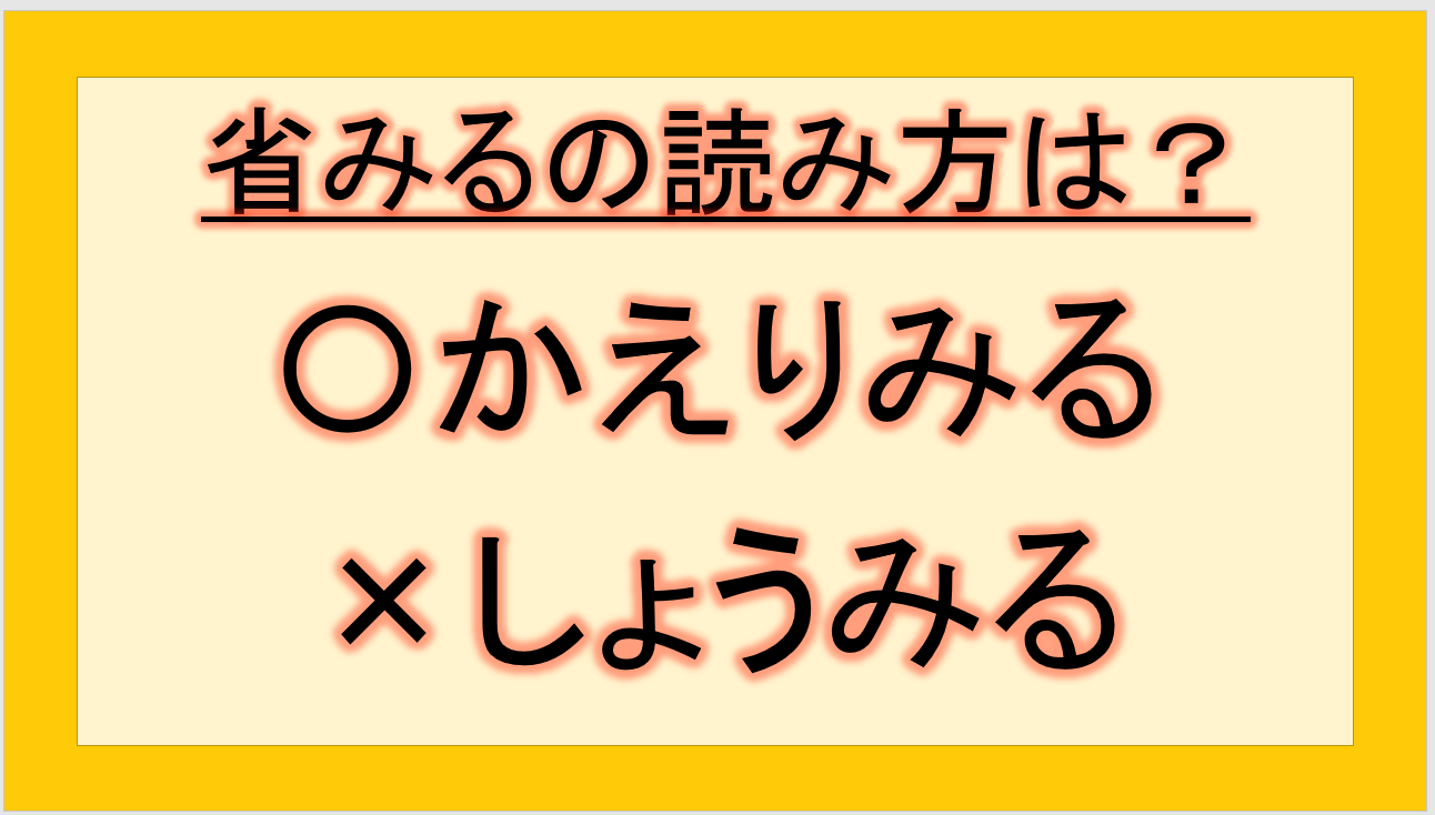 省みるの読み方は「カエリミル」が正解で、「ショウミル」は誤りです。