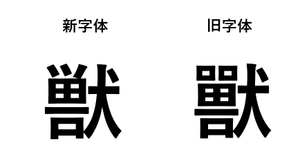 旧字体の「獸」は、画数が多く、より複雑な字形をしています。
