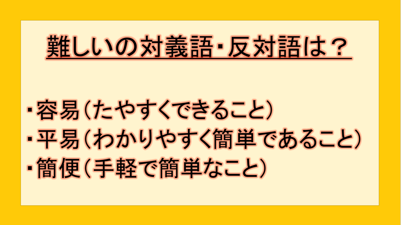 この記事では、「難しい」の反対語・対義語について例文も交えて詳しく解説していきます。