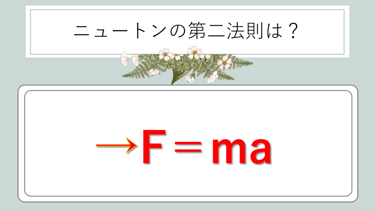 ニュートンの第二法則は、次の式で表されます。