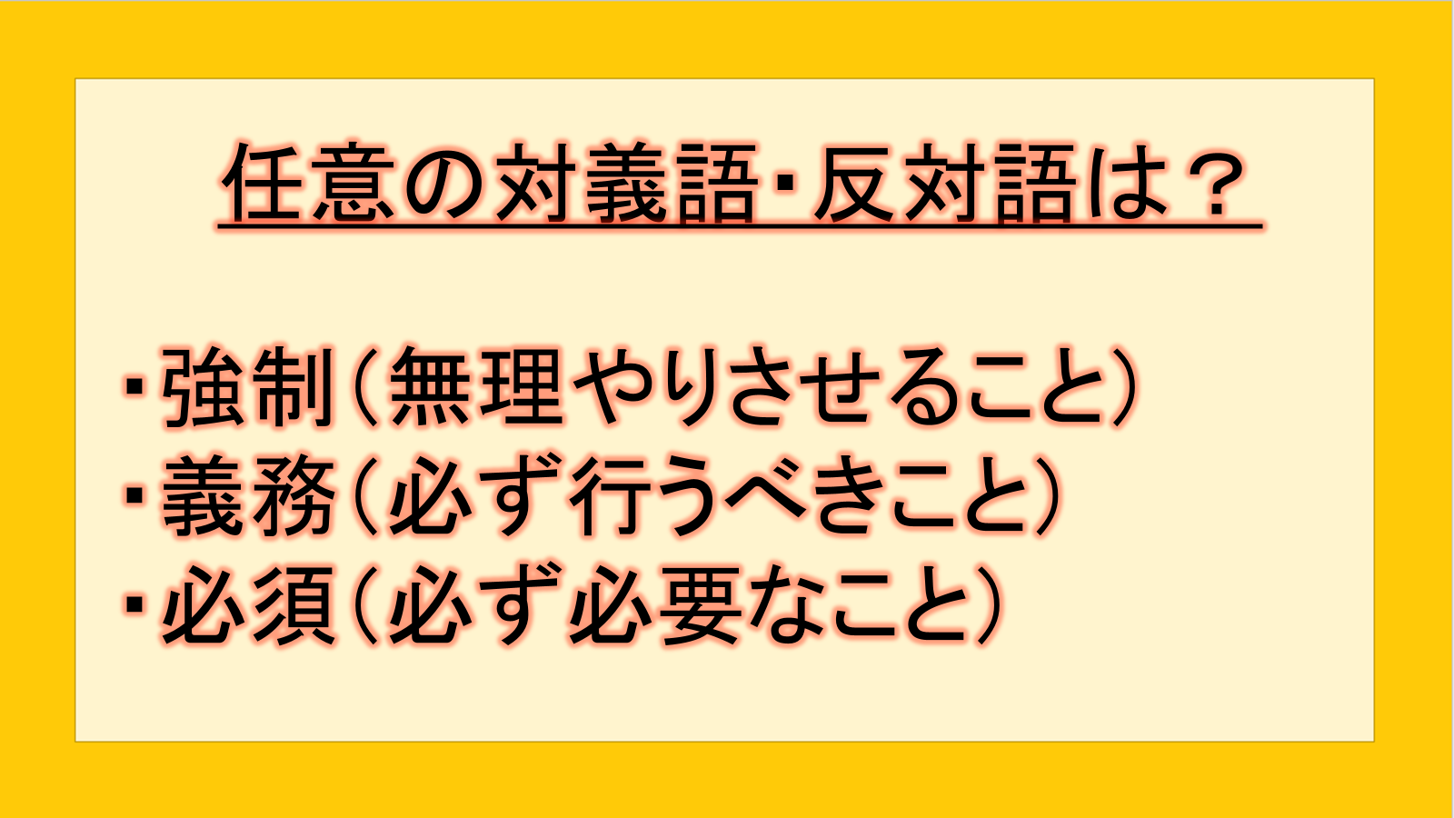 最初に「任意」の反対語・対義語を使った例文を紹介していきます!