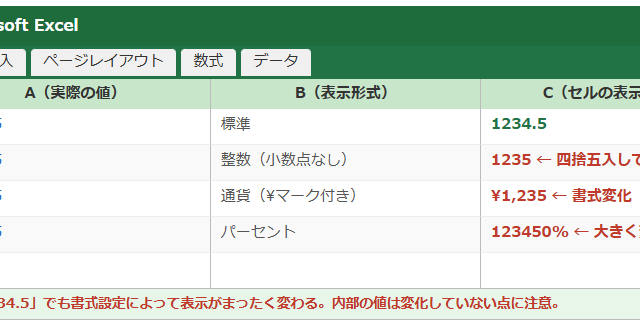 Excel 【Excel】エクセルで表示形式が勝手に変わる(指数eに変換・日付・文字列・数字や数式・四捨五入・小数点・文字列になる・ユーザー定義)原因と対処法 kawakamiworkcw テクテク(TechTech)ライフ(旧:のほほんライフ) エクセルで数値を入力したら小数点以下が突然切り捨てられた、データを貼り付けたら数字が文字列扱いになってしまった、セルの表示形式を設定したはず …