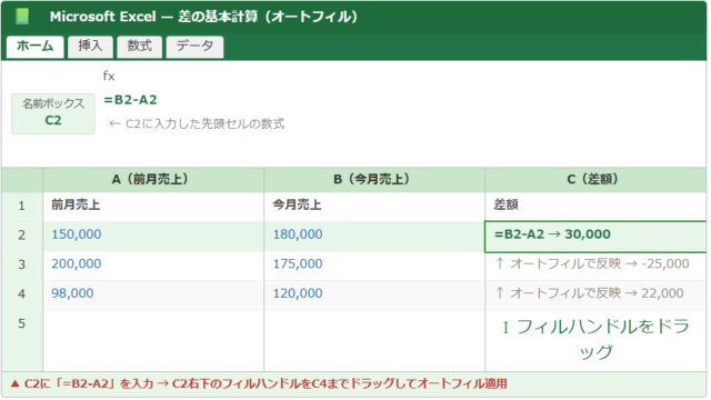 Excel 【Excel】エクセルで差額の計算・出し方(関数・プラスマイナス表示・2つのデータの差分・フィルターやマクロ)方法 kawakamiworkcw テクテク(TechTech)ライフ(旧:のほほんライフ) エクセルで売上の前月比を出したい、目標値と実績値の差額を一覧で確認したい、増減をプラスマイナスで見やすく表示したい、という場面は業務の中でと …