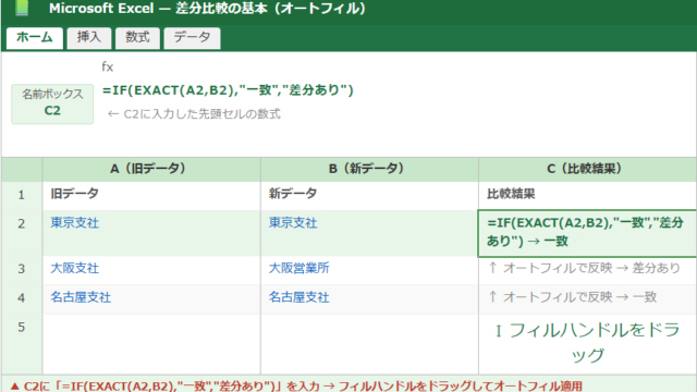 Excel 【Excel】エクセルで差分比較(2つのシート間の突合・関数・列の・データ・WinMerge活用)方法 kawakamiworkcw テクテク(TechTech)ライフ(旧:のほほんライフ) エクセルで作成したデータが更新される前と後で「どこが変わったのか」を確認したい、2つのシートやファイルを見比べて異なる箇所だけを素早く抽出し …