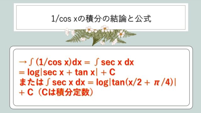 科学 1/cosxの積分は?公式と解き方を解説!(∫sec x dx・tan x・置換積分・三角関数の積分など) kikumi0721 テクテク(TechTech)ライフ(旧:のほほんライフ) 三角関数の積分は、微積分学における重要なテーマの一つです。特に1/cos x、すなわちsec xの積分は、一見すると単純そうに見えて実は非常 …