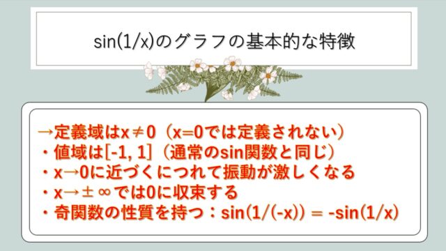 科学 sin(1/x)のグラフとは?特徴と性質を解説!(振動・x→0の挙動・極限・連続性・特異点など) kikumi0721 テクテク(TechTech)ライフ(旧:のほほんライフ) 数学において、関数のグラフは視覚的に性質を理解するための重要な手段です。特にsin(1/x)という関数は、非常に興味深い挙動を示す典型的な例 …