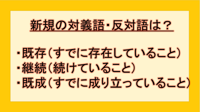 ビジネス 新規の対義語・反対語(反対の言葉)・反意語・対照語は?例文も用いて徹底解説! yuki89829403 テクテク(TechTech)ライフ(旧:のほほんライフ) この記事では、「新規」の反対語・対義語について例文も交えて詳しく解説していきます。 反対語・対義語をマスターするには、語彙をどれだけ知 …