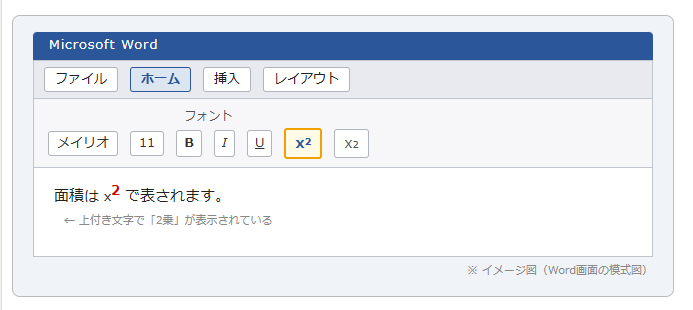 Wordでは「上付き文字」機能または数式エディターが最も見栄えよく仕上がります。