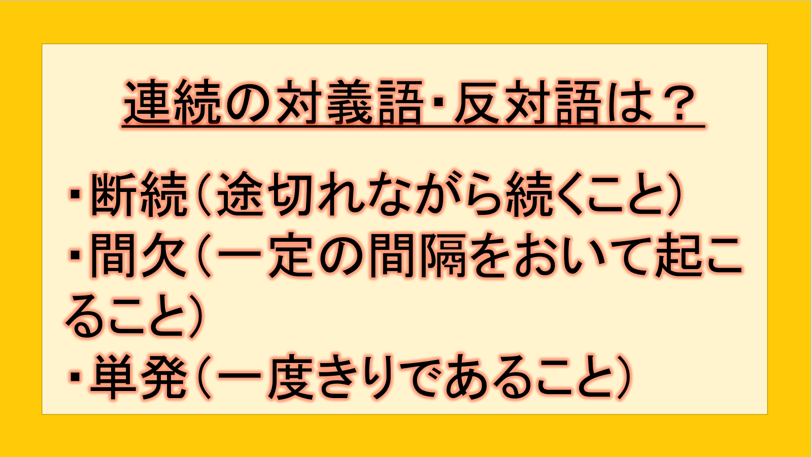 連続|反対語・対義語の単語を整理!丁寧な言い方
