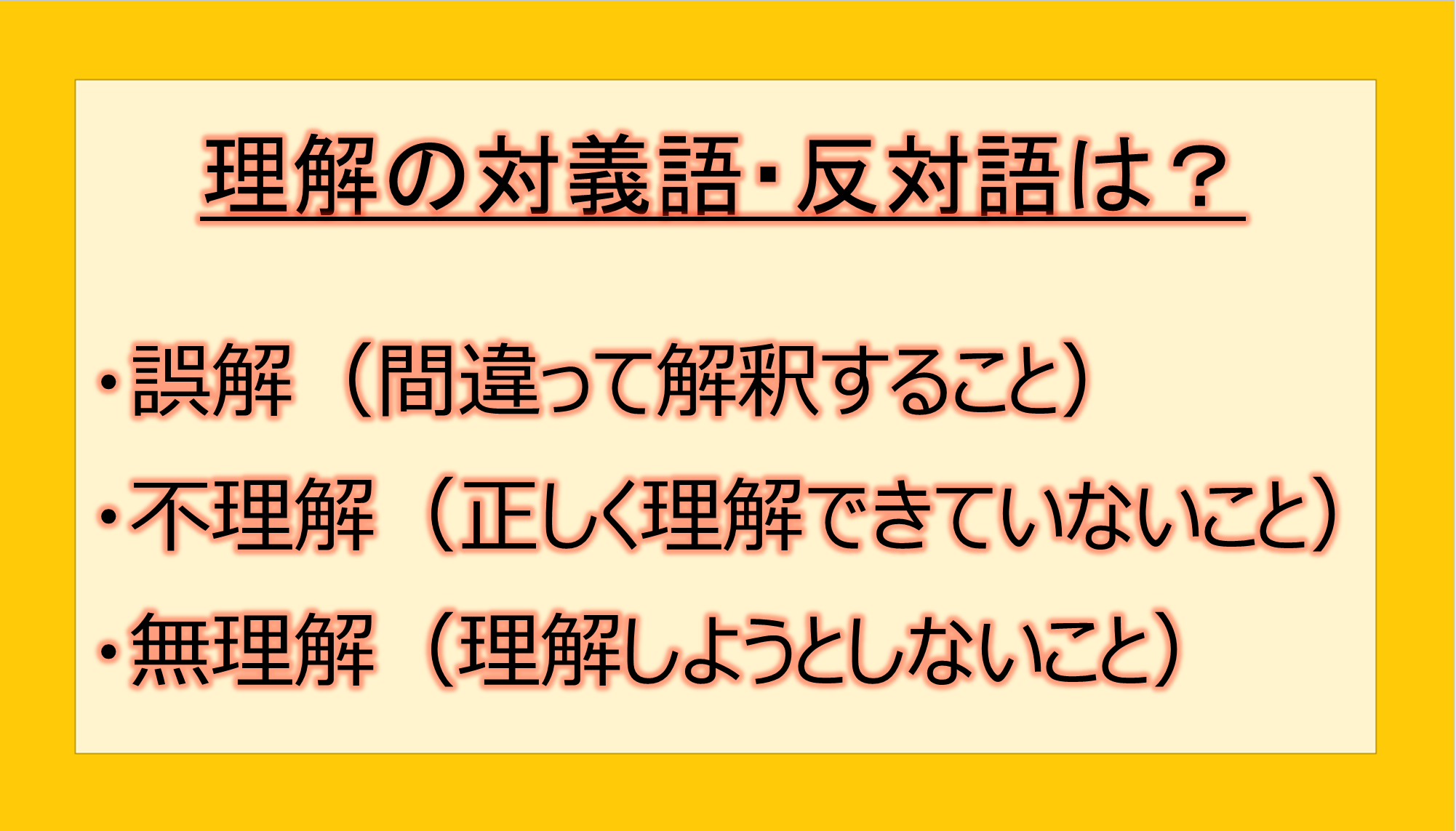 最初に「理解」の反対語・対義語を使った例文を紹介していきます!