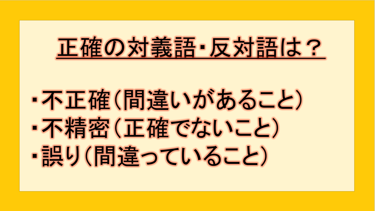 この記事では、「正確」の反対語・対義語について例文も交えて詳しく解説していきます。