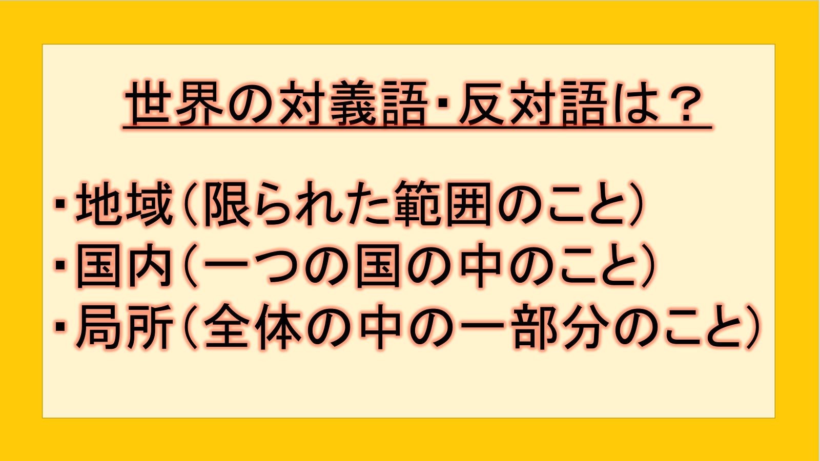 この記事では、「世界」の反対語・対義語について例文も交えて詳しく解説していきます。
