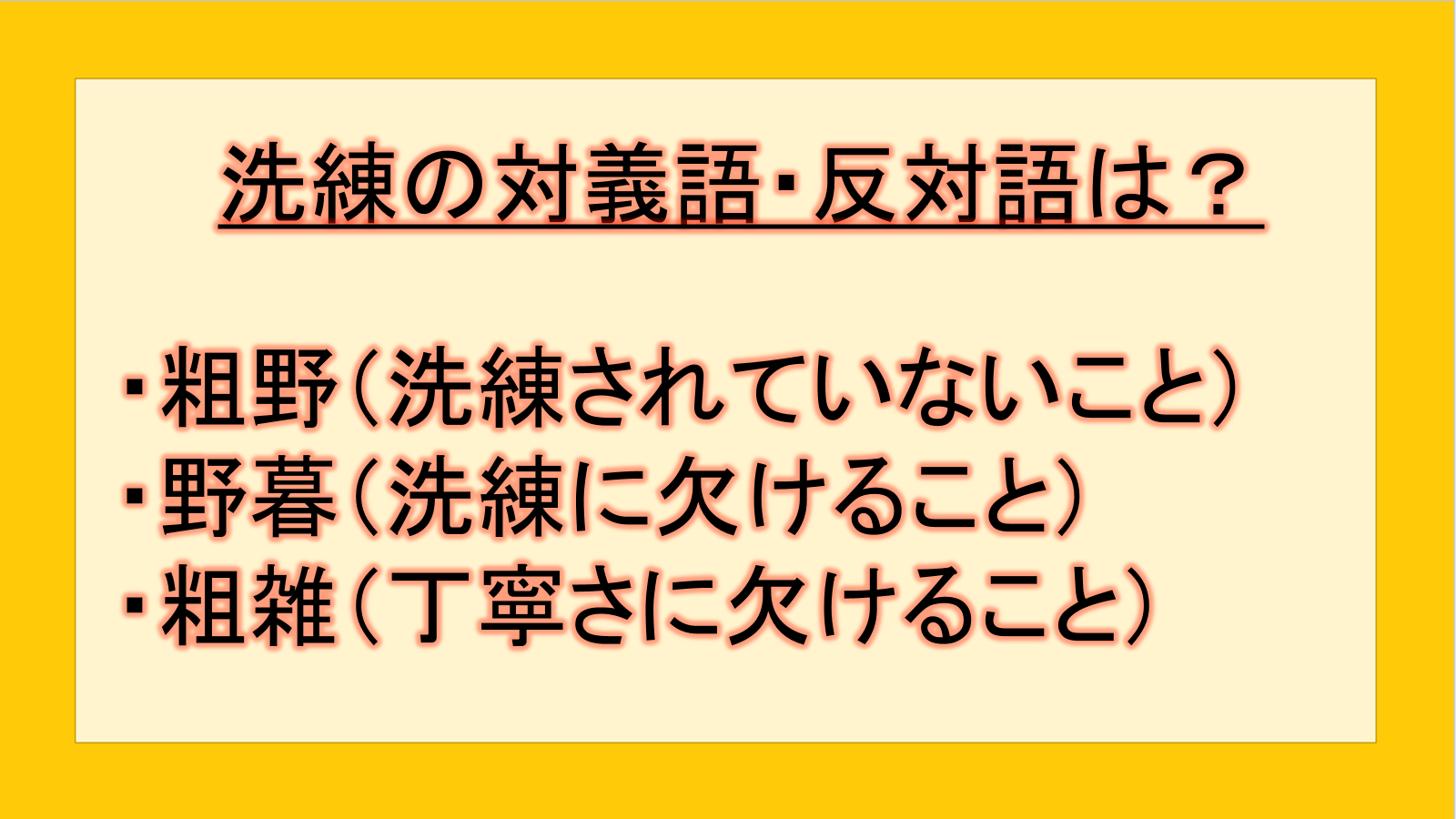 最も代表的な洗練の反対語は、