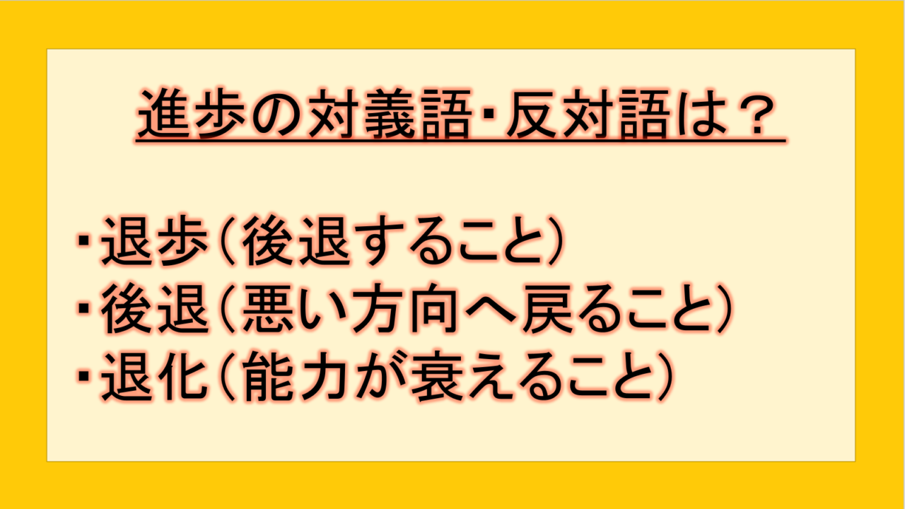 この記事では、「進歩」の反対語・対義語について例文も交えて詳しく解説していきます。