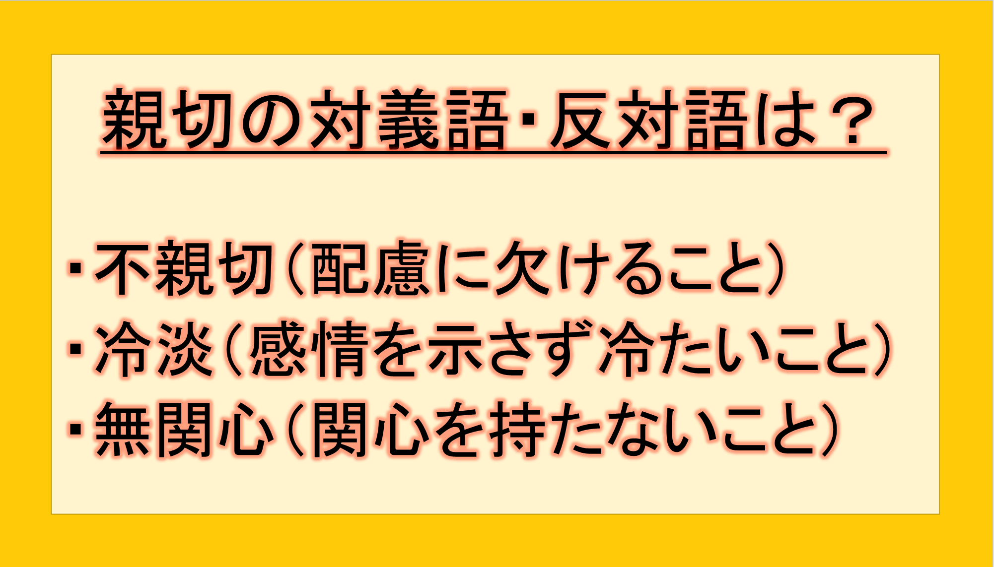 この記事では、「親切」の反対語・対義語について例文も交えて詳しく解説していきます。