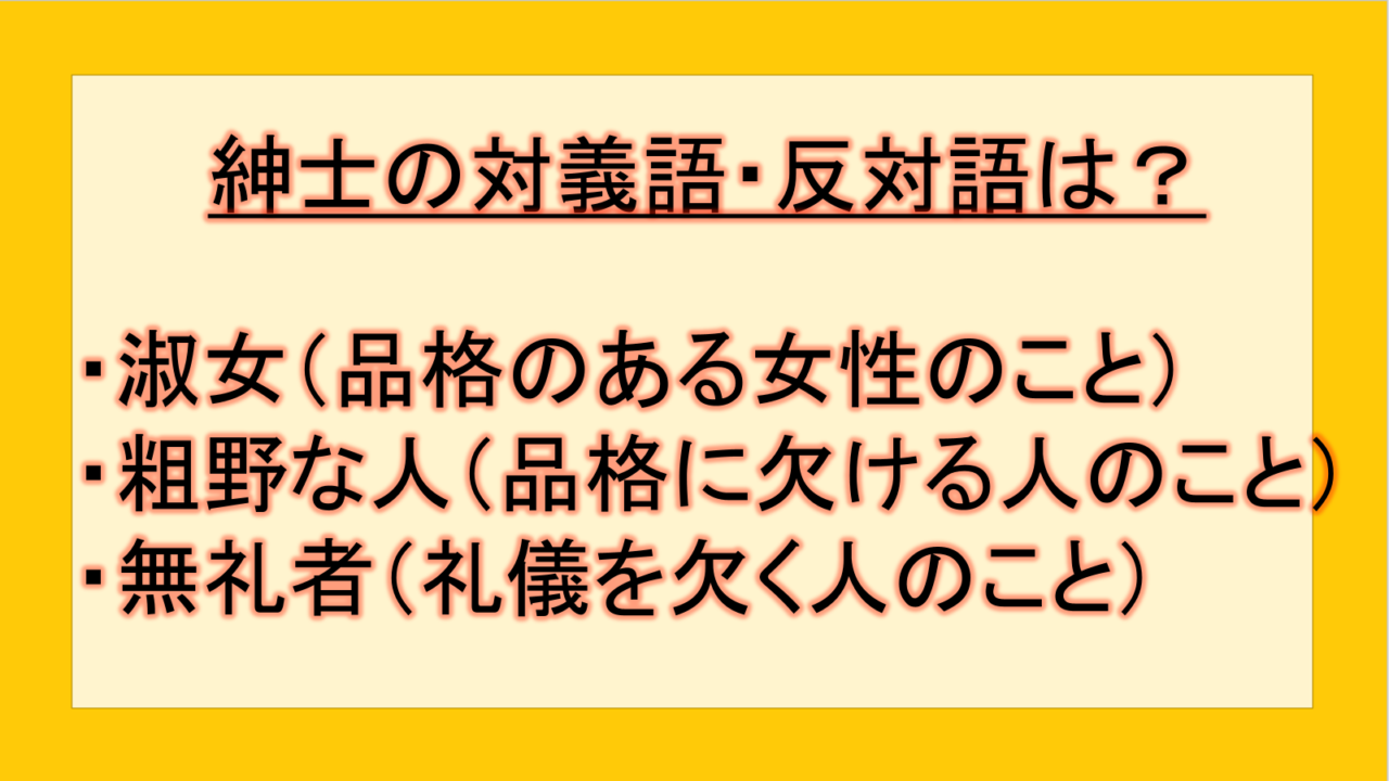 この記事では、「紳士」の反対語・対義語について例文も交えて詳しく解説していきます。