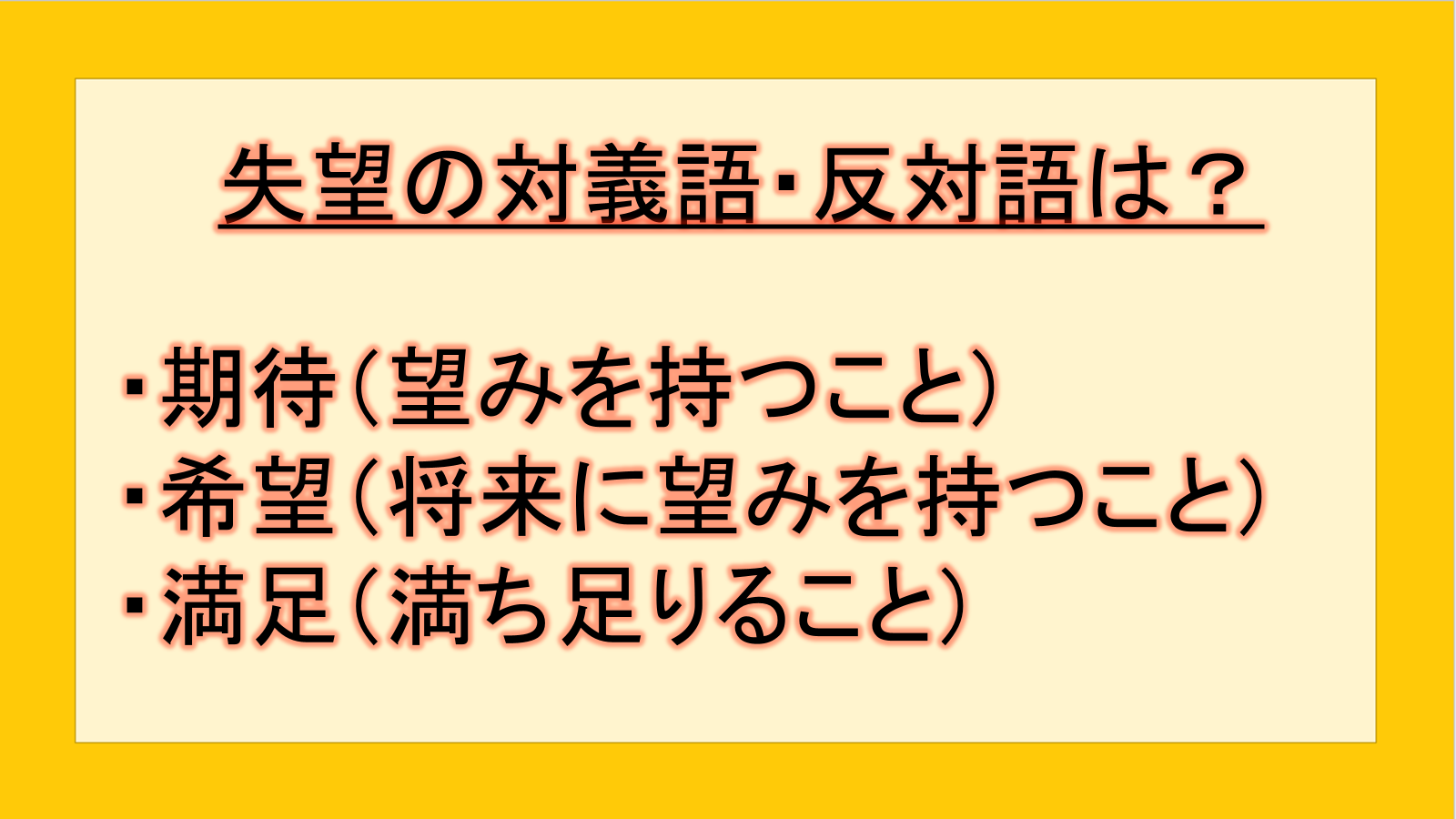 この記事では、「失望」の反対語・対義語について例文も交えて詳しく解説していきます。