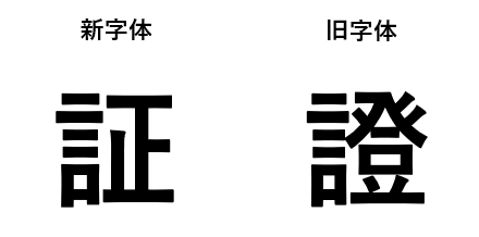 「證」→「証」のように、画数を減らして書きやすくしたものが新字体です。
