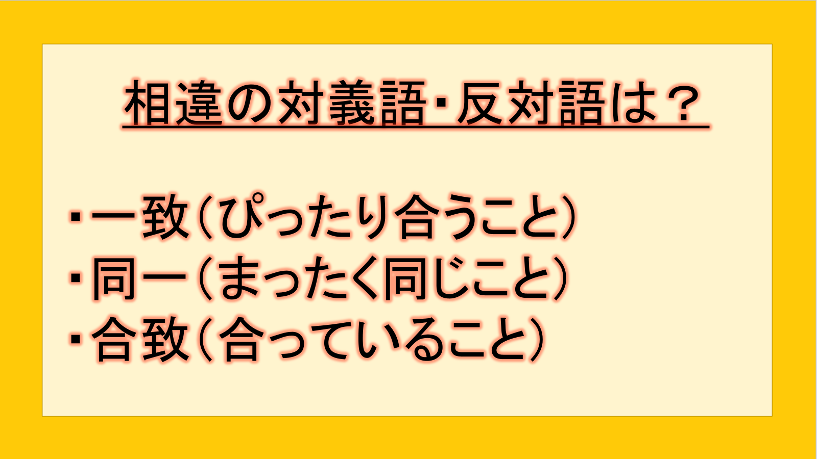 この記事では、「相違」の反対語・対義語について例文も交えて詳しく解説していきます。