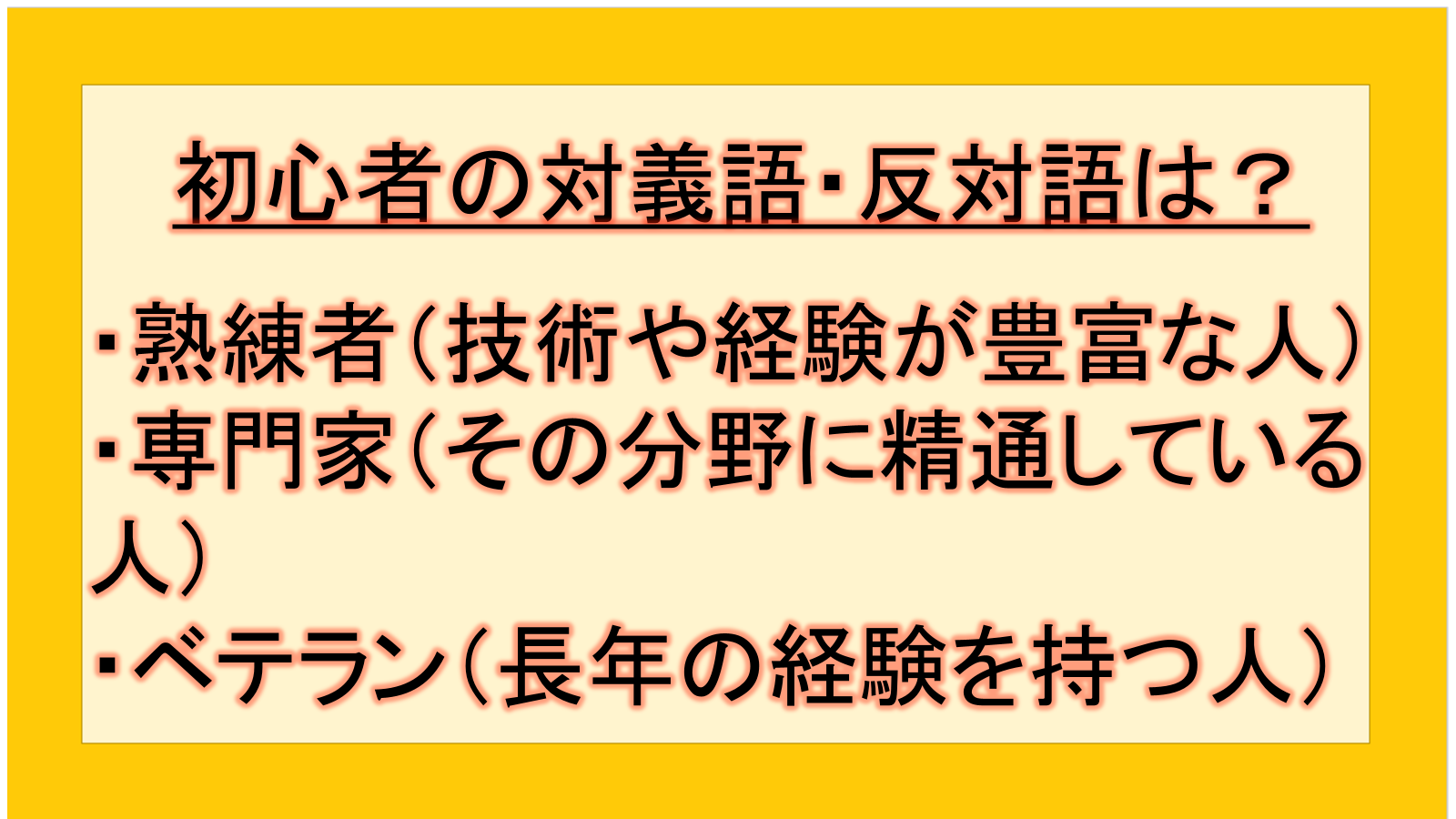 この記事では、「初心者」の反対語・対義語について例文も交えて詳しく解説していきます。