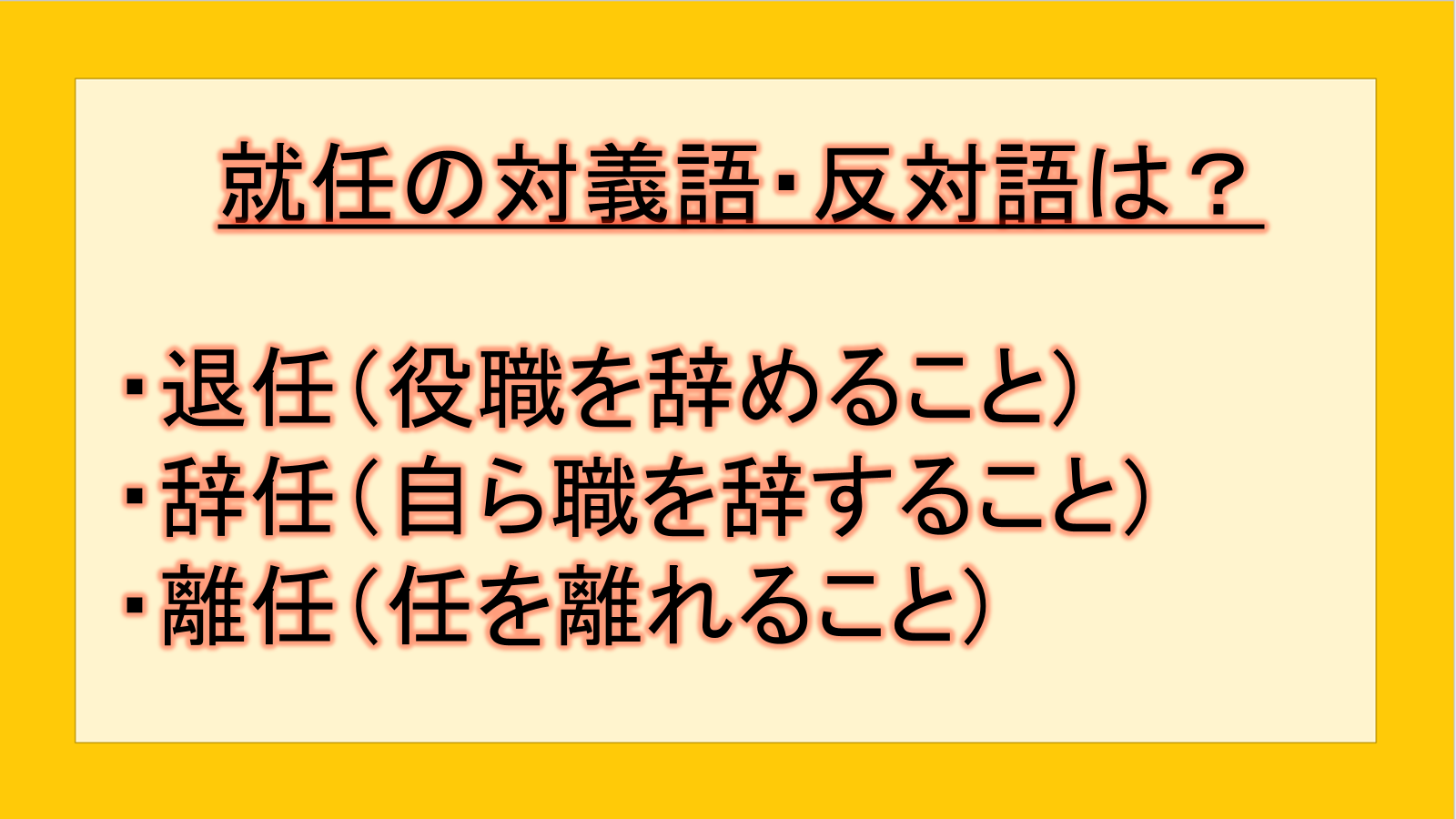 この記事では、「就任」の反対語・対義語について例文も交えて詳しく解説していきます。