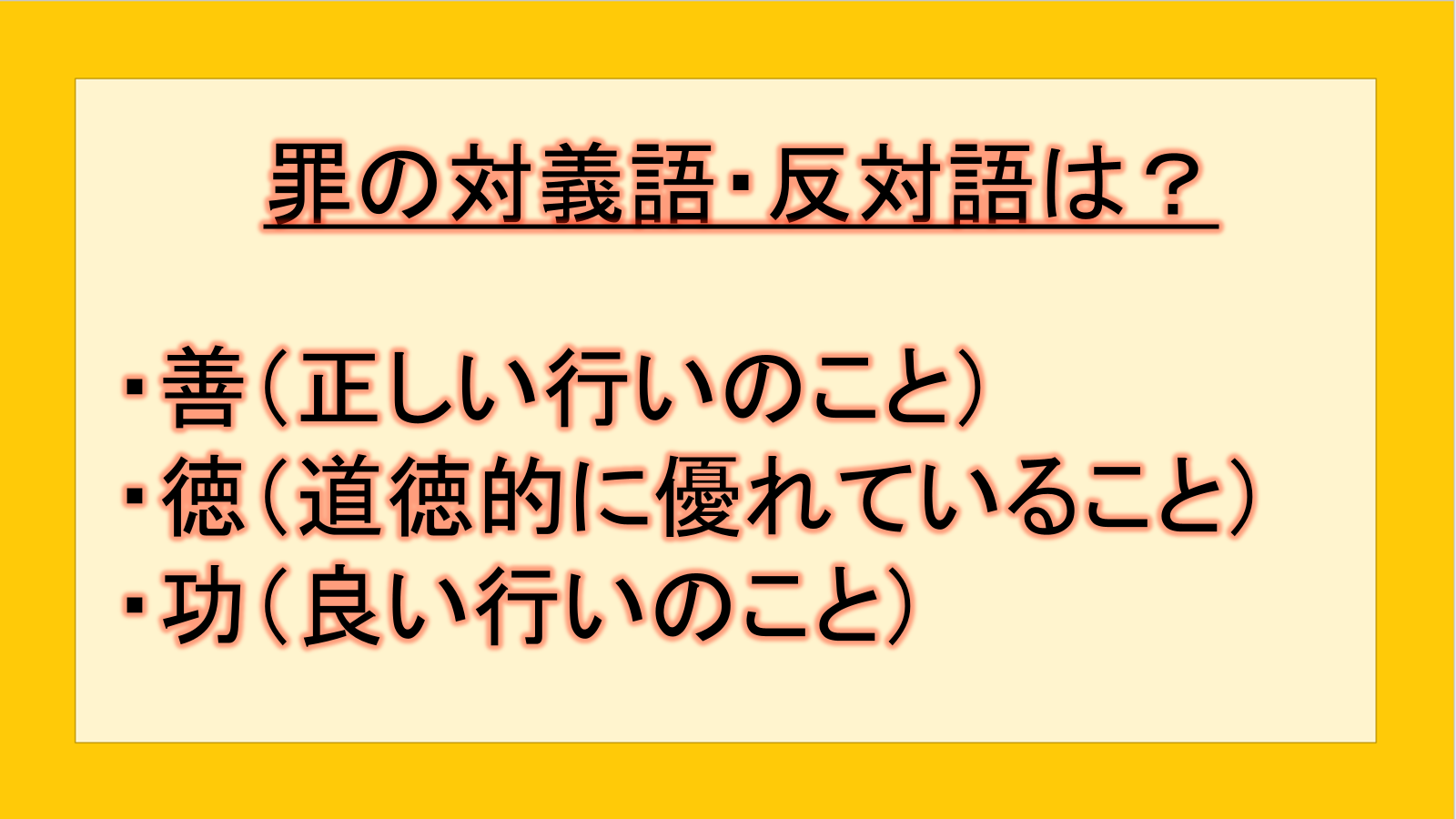 この記事では、「罪」の反対語・対義語について例文も交えて詳しく解説していきます。