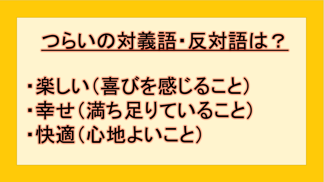 この記事では、「つらい」の反対語・対義語について例文も交えて詳しく解説していきます。