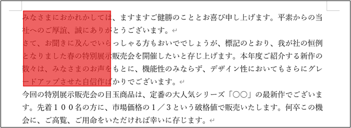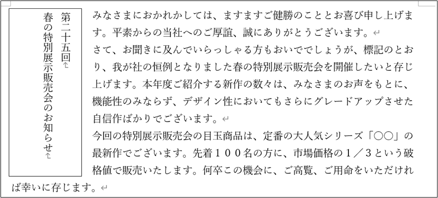 例として、以下のような案内文に縦書きの見出しを入れる場合を見ていきましょう。