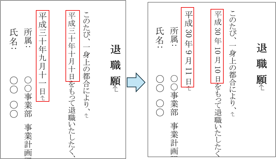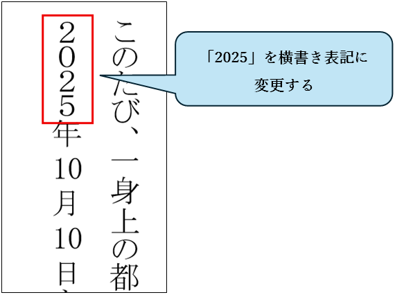 縦書きの中に横書きの数字を入れる場合は、かなり稀な例になります。